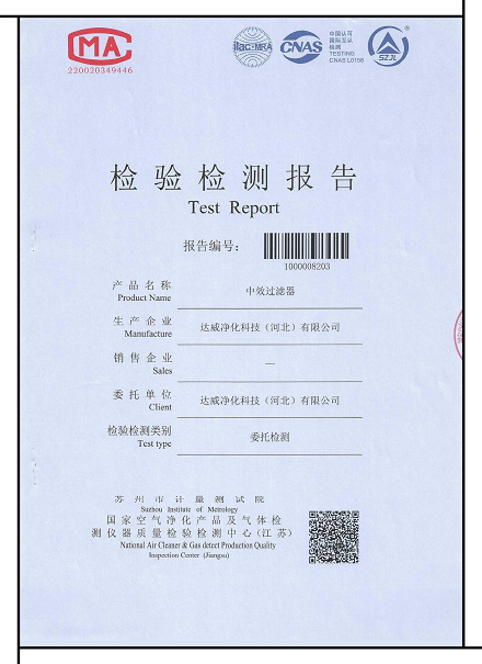 公司已通过ISO 9001质量管理体系、ISO 14001环境管理体系、ISO 45001职业健康安全管理体系认证。我公司拥有自己的品牌商标“冀净”,空气过滤器系列产品已通过国家专业机构质量检验检测认证。公司拥有初中效空气过滤器性能测试台,高效过滤器扫描检测台,滤料性能检测台等技术领先的检测设备,并建立了“空气过滤设备技术研发中心”。公司拥有十万级标准化洁净生产车间600㎡,空气过滤器年产能可达50万套以上。